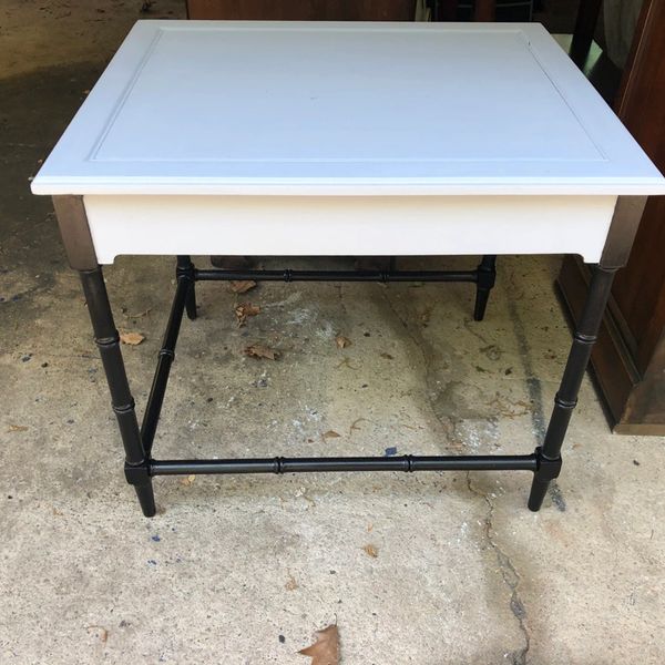 It’s not just for coffee anymore. This two tiered Ethan Allen coffee table was sanded and quaintly repainted, but in keeping the slight nicks and dings, we are reminded that this table is to be used and will handle all you throw at it. You can fit your 5000 piece puzzle or Monopoly game here with out having to shift to a larger surface midway. Go ahead and have your family movie night with those 2+ large pizzas, plates and cups set atop this baby without anything falling off the table each time you open the box to grab a slice. (It’s happened to us all.)