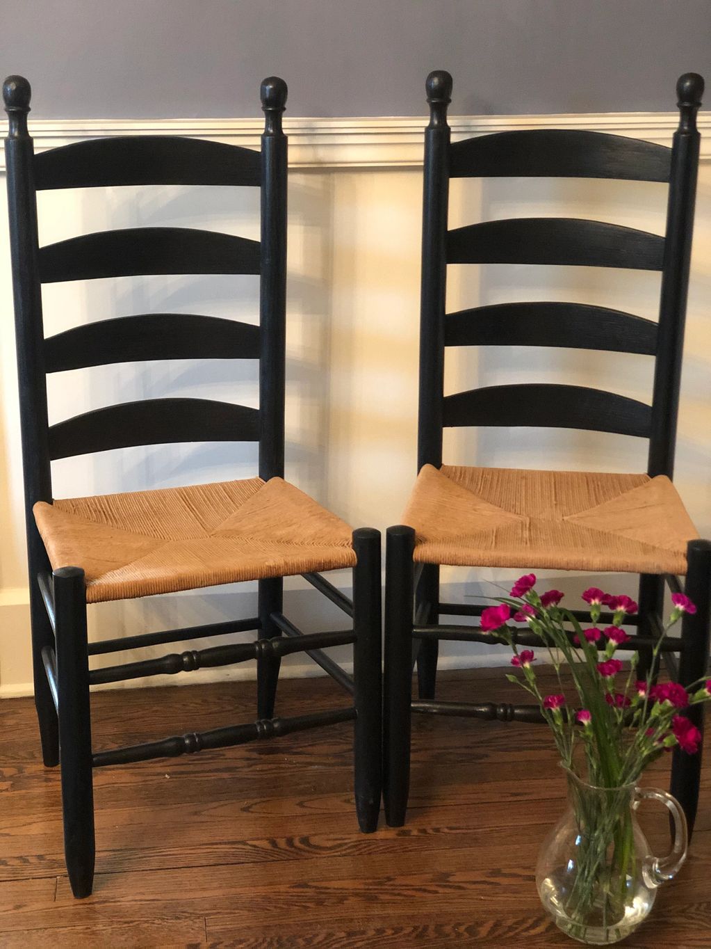 Rush seat, ladder back chairs are a classic addition to a dinner table when friends or family drop in.  There's always room at the table for one more with these.